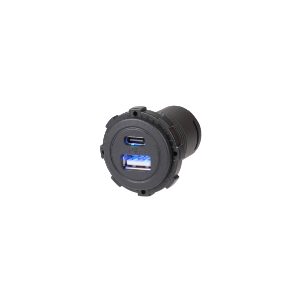 USB-A and USB-C panel mount sockets for charging of mobile devices