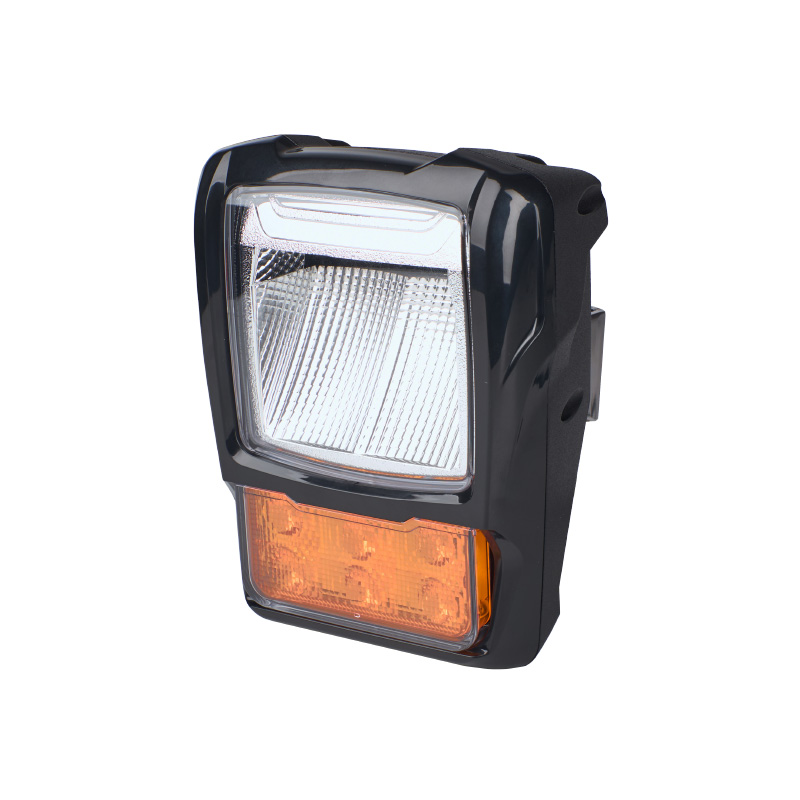 The C2-3032 combines a front direction indicator with an LED work light, housed in a durable aluminium body with a polycarbonate lens. It operates within a voltage range of 9-64VDC and features a 28W work light above the direction indicator, providing a practical and useful additional light source. With a power consumption of 28W for the work light and 2W for the direction indicator, it delivers bright and glare free illumination while maintaining low energy usage. The light is designed to withstand harsh conditions, with an IP68/IP69K rating for protection against dust, water, and chemicals, and 10G vibration resistance, it also offers over-voltage, reverse polarity, and overheating protection. Approved under EN50498 and ECE R6 (1b), it meets stringent electromagnetic compatibility standards. The LEDs produce a cool white light with a Lumen output of 3,900lm, enhancing visibility in low-light conditions. This versatile light is ideal for use in agricultural, specialist, warehouse, and construction vehicles.