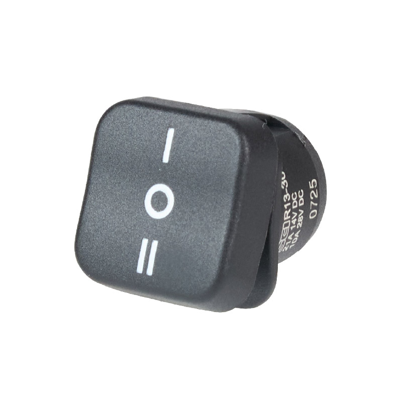 | R13-309A1-02-BB-177 | 21A 14VDC 10A 24VDC | 3P SPST ON-OFF-ON | IP40 | 4.8 x 0.8mm | Marked Black Rocker | No illumination |