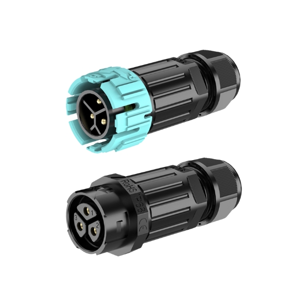The compact SL series IP68 self locking connectors feature a quick push to lock, and twist to release design for rapid installation. They come in plug and socket configurations for inline cable and panel mounting, are waterproof, dustproof and UV-resistant for demanding indsutrial and outdoor environments. They are well suited for use in lighting, agricultural, renewable energy, robotics, automation, industrial and applications. The wider product family also includes M15, M19, M28 and screwless connection types in M23, M25 for cable to cable and cable to panel.- 2 to 5 pin Gold plated contacts for power and signal applications